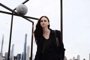 The third room with contemporary designs was even darker than the first gallery. The mood was slow, quiet, contemplative and still mysterious. A soft glow of mosquito net, Kaya, and the contemporary version of bodoko (padded mat) created a homey intimate feeling (Fig. 6). These objects were contrasted with commercial mannequins striking standard fashion poses that wore designs by Rei Kawakubo, Issey Miyake, and Yohji Yamamoto (Fig. 7 and 8). These high-fashion objects, as well as works by two contemporary textile artists, Susan Cianciolo and Christina Kim, were inspired by patchworked, deconstructed and repurposed aesthetics. To highlight this dialogue, they were juxtaposed with large boro blankets, some weighing upwards of 65 pounds, that hung from the ceiling. [4]